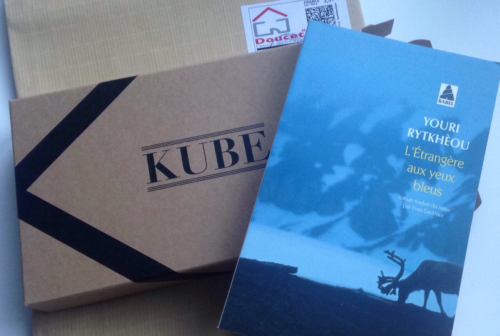 Quand ma box est arrivée, dans une boite qui ressemble à un paquet cadeau, j’ai eu la surprise de découvrir un roman russe sélectionné par la librairie Doucet, au Mans.