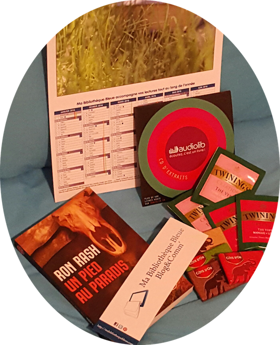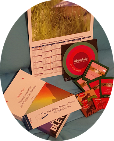 un CD d’extraits de livres audio, quelques douceurs, mais aussi un marque-page et un calendrier 2016 aux couleurs de Ma Bibliothèque Bleue.