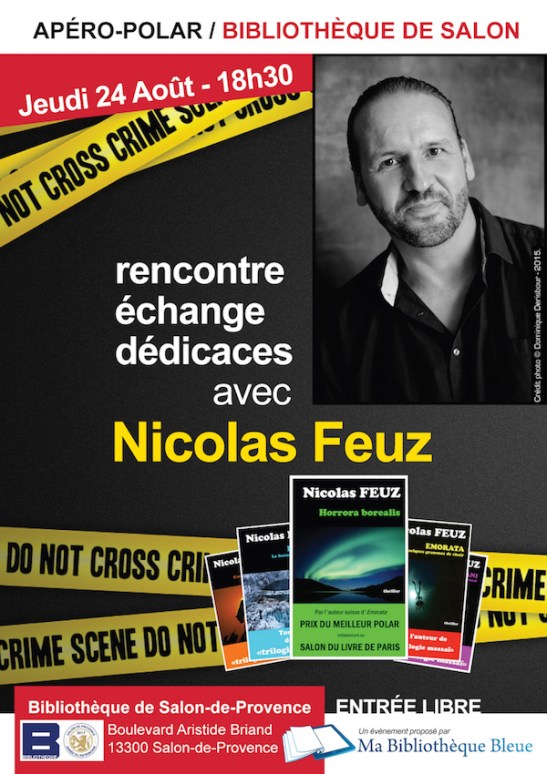 Au cours d’un apéro-polar qui se déroulera à la bibliothèque municipale, vous pourrez échanger avec l’auteur et vous faire dédicacer ses romans.