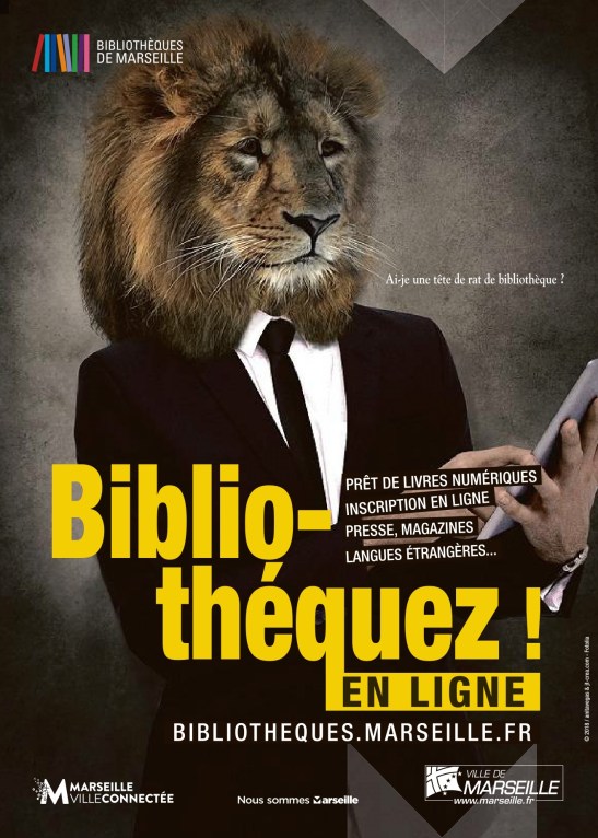 J’ai découvert hier, dans la presse régionale, cette publicité pour les bibliothèques de Marseille.