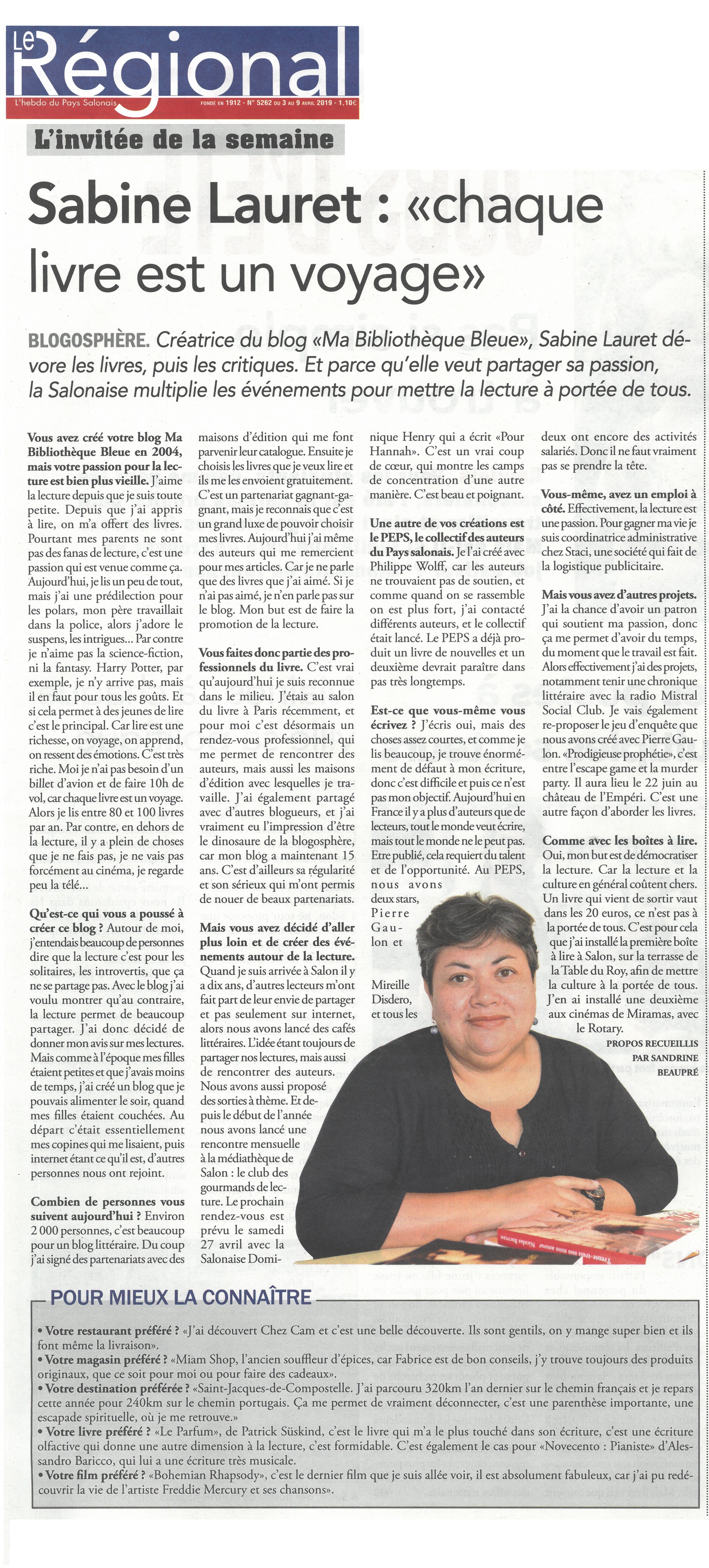 Invitée de la semaine … J’ai répondu aux questions de Sandrine Beaupré pour cet article paru dans Le Régional de la semaine dernière.