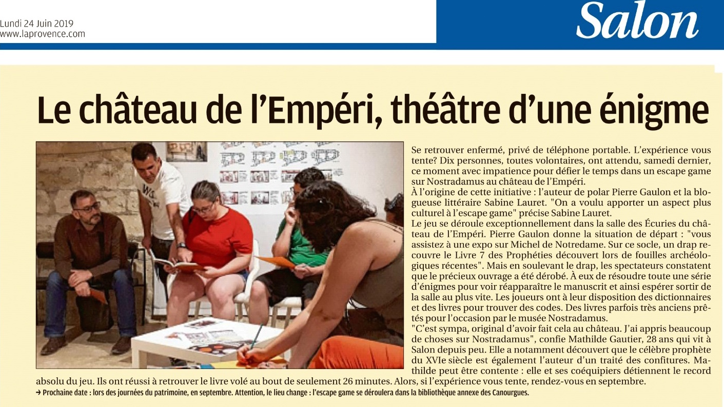 Samedi dernier avait lieu au Château de l’Empéri (Salon de Provence), deux nouvelles sessions du jeu Prodigieuse prophétie.