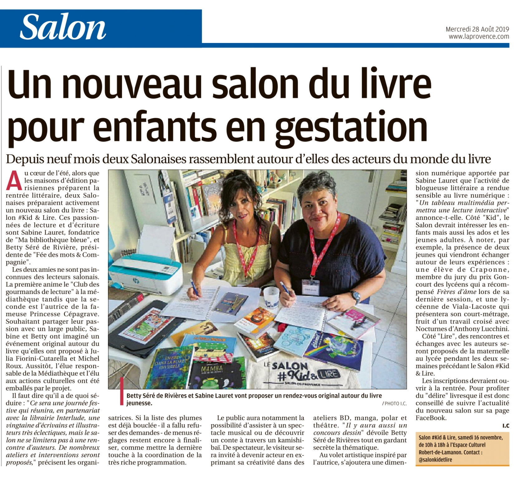 Le quotidien La Provence annonce le salon #Kid&Lire, projet sur lequel je travaille depuis des mois avec mon amie Betty Séré de Rivières.
