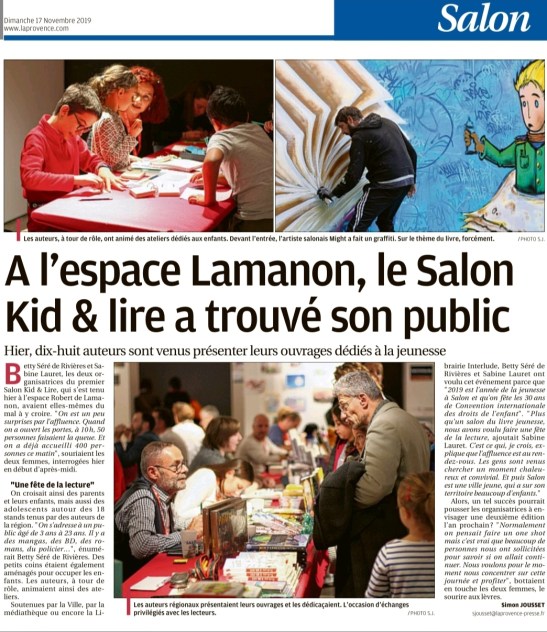 Le quotidien La Provence retrace l’incroyable journée du salon #Kid&Lire. C’était samedi dernier, à l’espace culturel Robert de Lamanon.