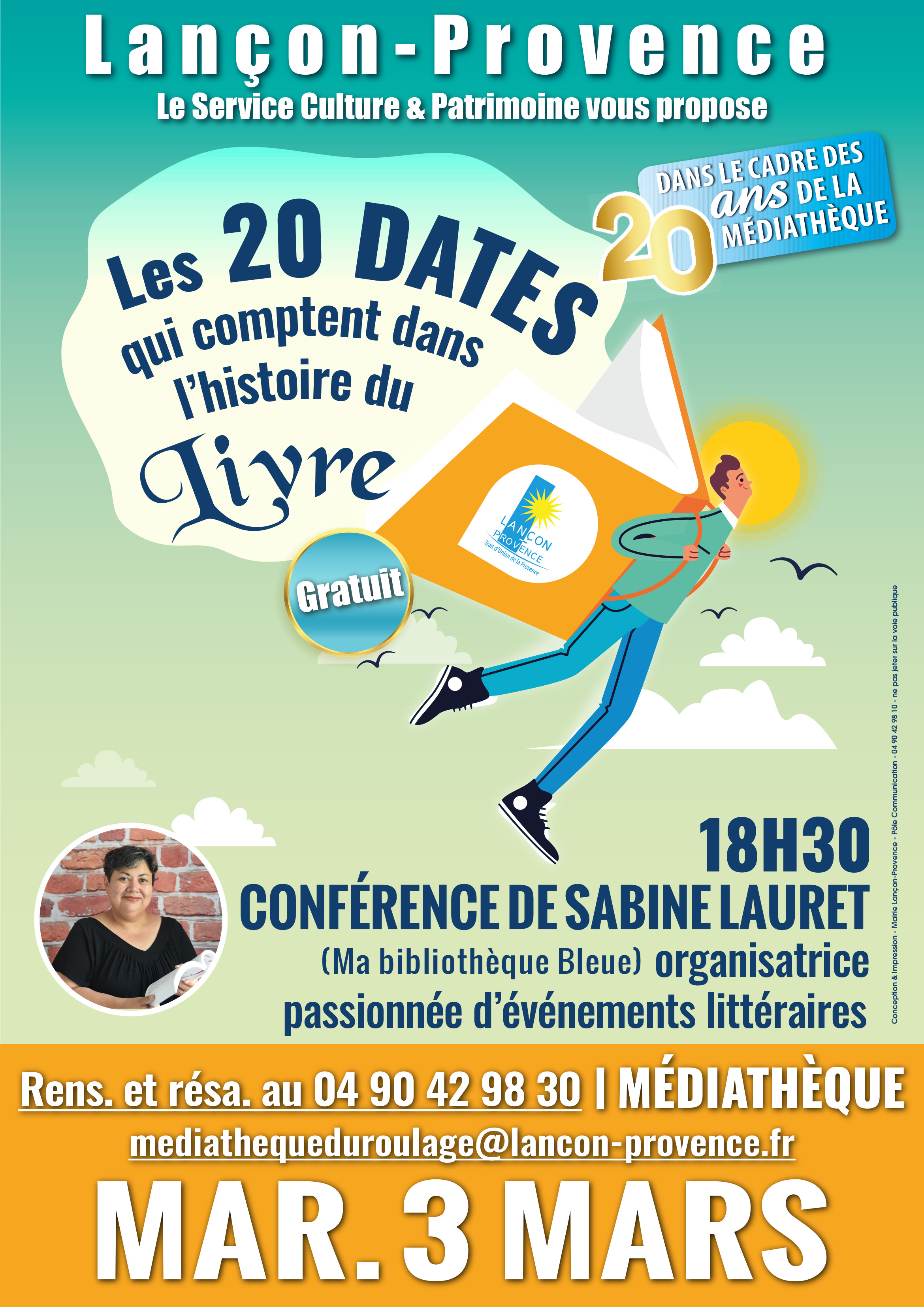 J’ai le plaisir de vous annoncer la prochaine conférence que je donnerai à la médiathèque de Lançon-Provence, à l’occasion de ses 20 ans.