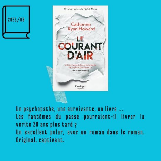 Pour ce dernier mois de l’année, j’ai eu énormément de plaisir à lire Le courant d’air, de Catherine Ryan Howard. Une intrigue incroyable, une originalité parce qu’il y a un livre dans le livre. Enorme coup de cœur !