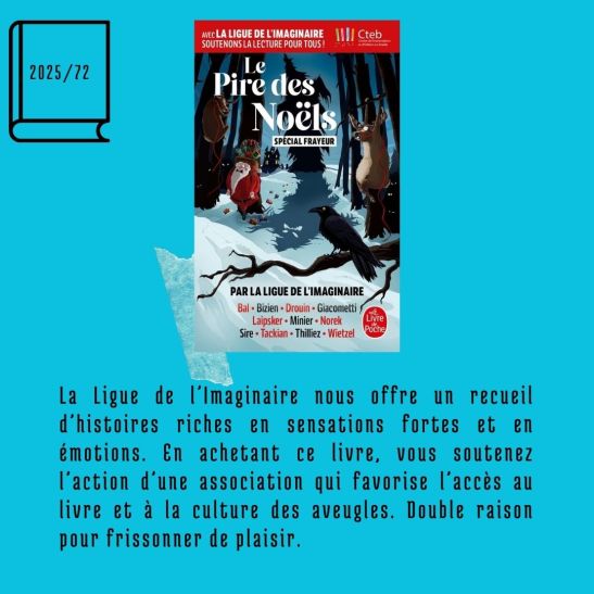 Idem pour la seconde édition du recueil de La Ligue de L’Imaginaire, Le pire des Noël. Un concentré de frissons pour soutenir une association qui favorise l’accès au livre et à la culture des aveugles.